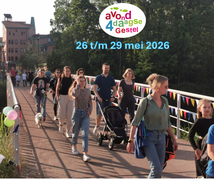 De 43e avond4daagse zal in 2026 plaatsvinden van dinsdag 26 t/m vrijdag 29 mei. De avond4daagse kent naast al bekende routes ook weer een nieuwe route op zowel 5 als 10 km. Ook is er dagelijks een (verkorte) route geschikt voor rolstoelen. Er zal muzikale omlijsting zijn van verschillende Gestelse muziekgezelschappen. Vanaf 1 april 2026 kun je je aanmelden als deelnemer.